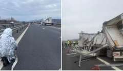 Două TIR-uri au fost implicate într-un accident rutier, marți, pe autostrada A1, între Deva și Orăștie, județul Hunedoara. Unul dintre vehicule transporta anvelope, iar celălalt - sulfat de amoniu, aproximativ 23 de tone.