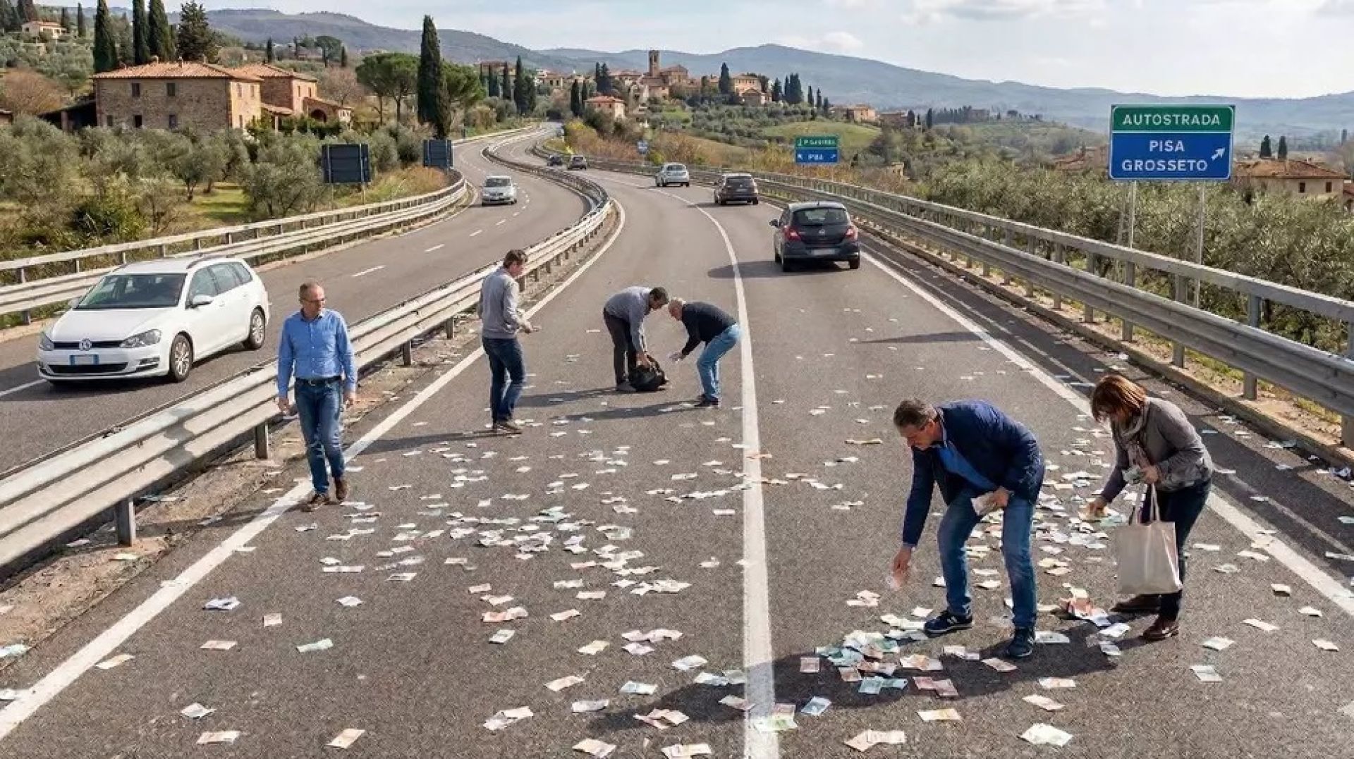 Bani căzuți dintr-un camion pe șosea, în Italia. Șoferilor care ciculau de-a lungul șoselei de centură din Squinzano, în provincia Lecce, nu le-a venit să creadă ochilor când au observat numeroase bancnote pe asfalt.
