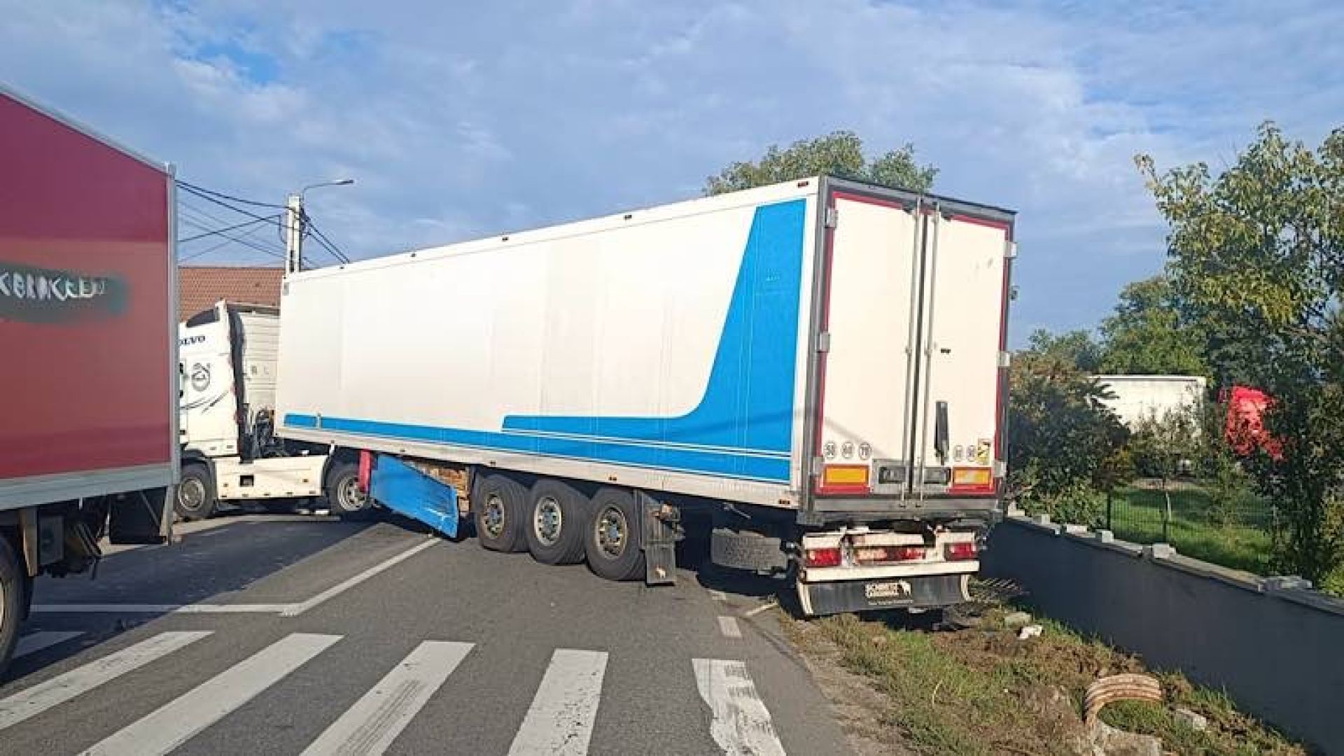 Trafic complet blocat. Un camion s-a pus de-a curmezișul