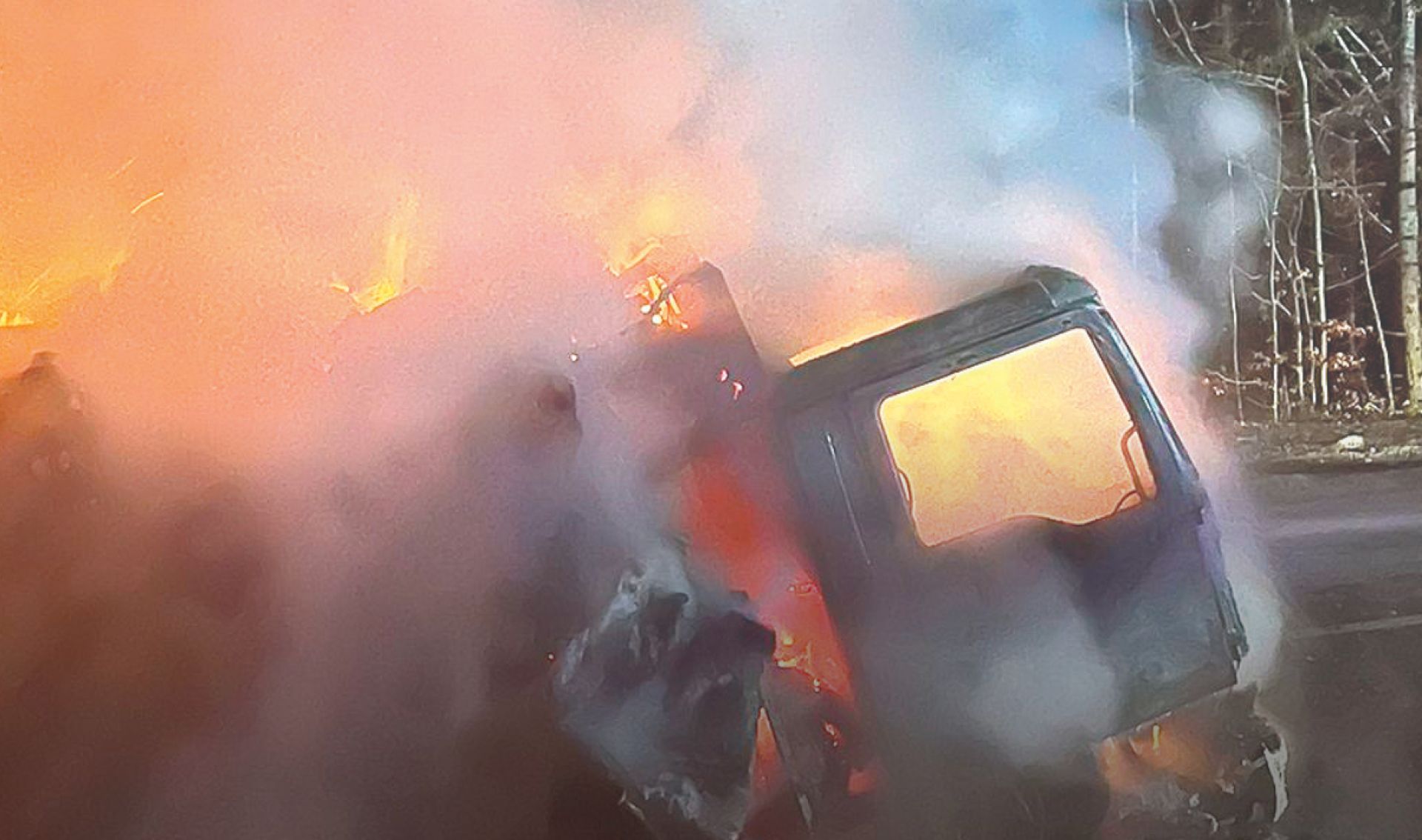 „La sosirea forţelor, incendiul se manifesta generalizat la autocamion, cu posibilitatea propagării la fondul forestier“, a declarat căpitanul Irina Popa, purtător de cuvânt al Inspectoratului pentru Situaţii de Urgenţă „Petrodava“. Camionul şi marfa din acesta au ars complet.