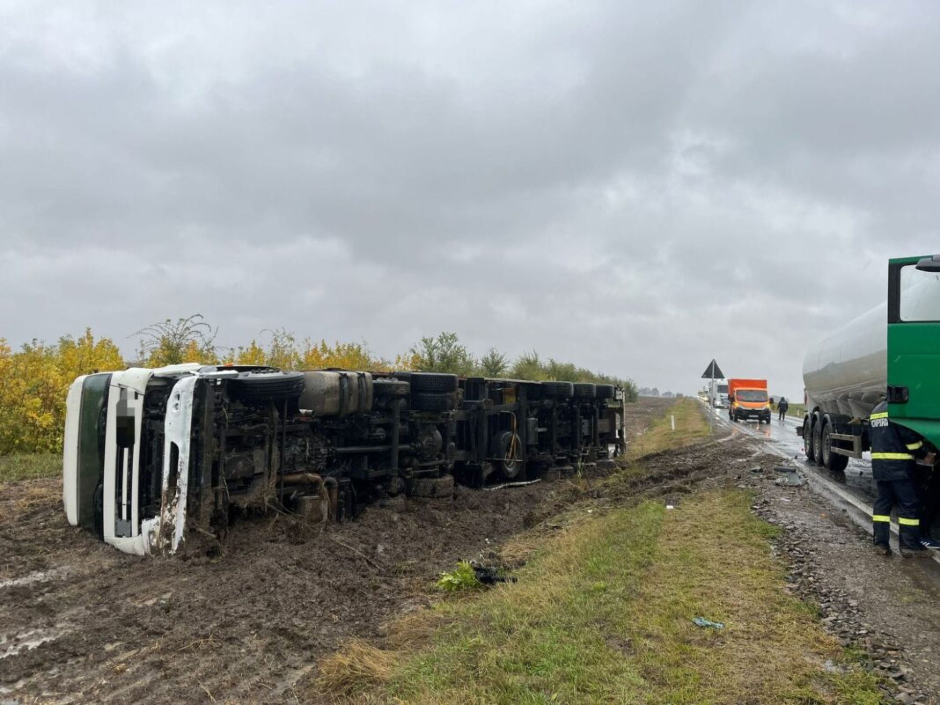 „Garda de intervenţie Însurăţei intervine cu o ASAS pentru asigurarea zonei la un camion încărcat cu materiale de construcţie, răsturnat în afara părţii carosabile pe raza localităţii Lanurile”, a declarat purtătorul de cuvânt al ISU Brăila.